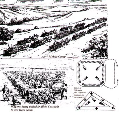 Наступним запозиченням є возове укріплення, характерна риса гуситських загонів, пізніше й козаків; через сприятливі ландшафтні умови, цю тактику протягом тривалого часу застосовували на теренах Східної Європи [5, с. 48]. Що стосується козацьких загонів, то це застосування, переважно, виправдовувало очікувані результати.