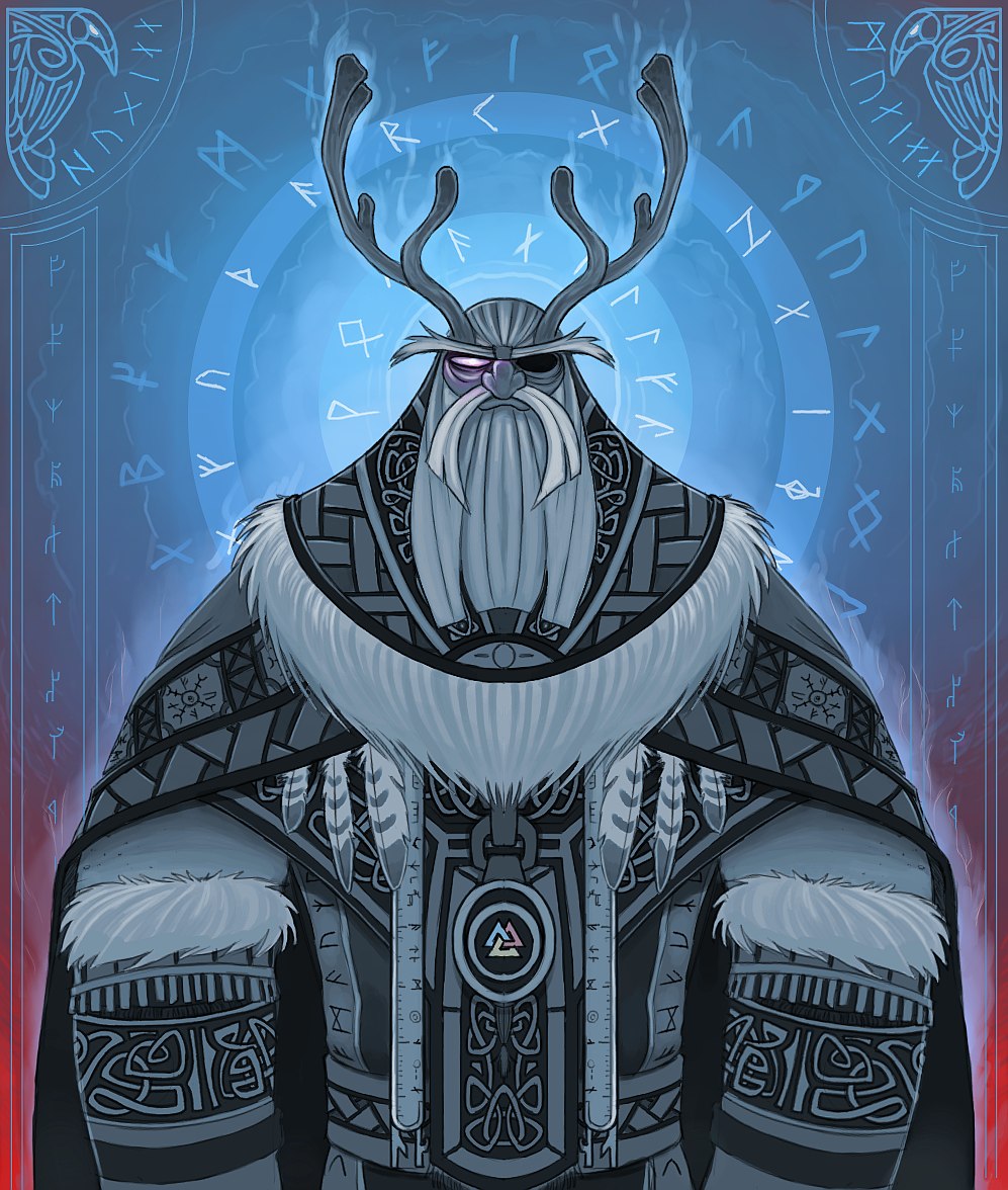 Одін – батько богів та всеотець, дух пронизуючий життєдайною силою все навколо. Разом з Віллі і Ве він створив небо і землю, з Хйоніром і Лодуром людину. Він був ініціатором першої в світі війни, творцем мистецтва скальдів, винахідником рун.