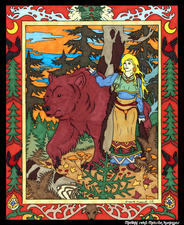 Спільним фінським небесним богом постає Юмала чи Юмалестонців). Власне, загальна картина пантеону божеств у фінів і карелів постає наступним чином. Господарем лісу чи лісовим богом виступає Тапіо. Вважалося, що він посилає здобич мисливцям при полюванні. Його жінка – Міелотар (Міеліккі) була «лісовою господинею». Тапіо мав доньок – покровительок окремих звірів при полюванні. Вони називалися «матерями звірів». Зокрема, Юонертар була матір’ю північних оленів. Загалом, якщо говорити про лісових божеств у фіно-угорських народів, варто відмітити, що вони дуже шанувалися. Причиною цього був  спосіб життя, де важливе місце посідало полювання.