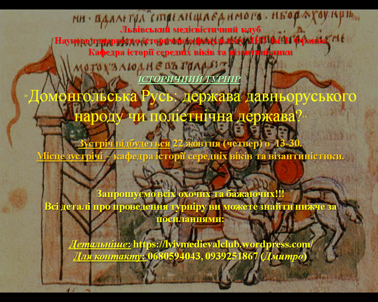 Місце зустрічі кафедра історії середніх віків та візантиністики.
