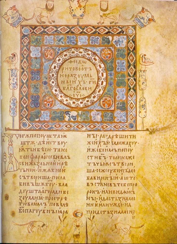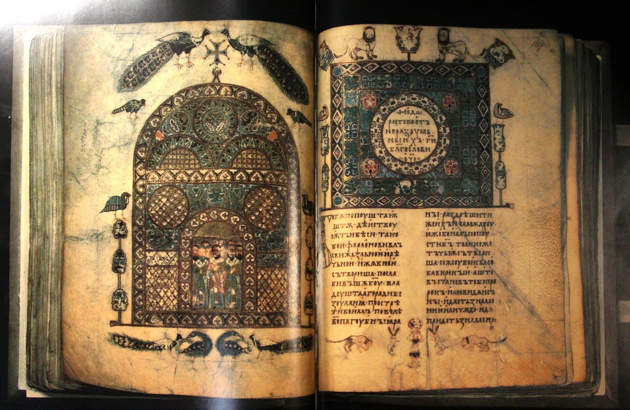 Особливістю “Ізборника Святослава” (1073) є зображення князя Святослава в колі сім’ї- найдавніший вітчизняний портрет. Характерним елементом у декоративному оздобленні книги є наявність бкувиць (багато прикрашених початкових літер глави), використання зооморфних, геометричних та рослинних мотивів у заставках.
