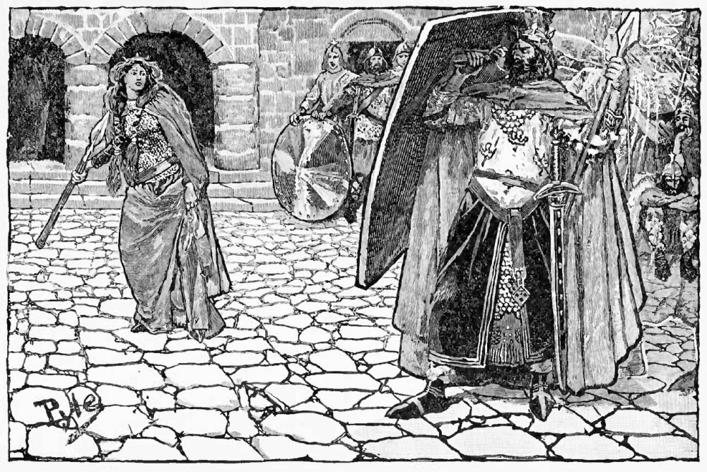 У той час бургундський король, Гюнтер, бажав взяти собі за жінку ісландську королеву Брюнхільду, яка обов’язковою умовою для одруження висунула перемогу майбутнього чоловіка над нею. Ця місія вважалася нездійсненною, бо Брюнхільда мала богатирську силу. Єдиним, хто міг її перемогти, був, звичайно, Зіґфрід. За допомогою плаща-невидимки від допомагає Гюнтеру здолати майбутню дружину. Весілля обох пар відбувається в один день.