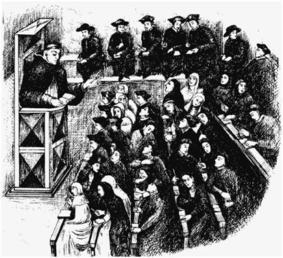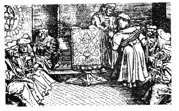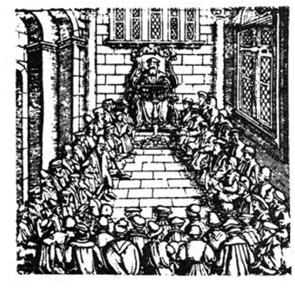Лекция в университете (рисунок из сочинения Себастьяна Мюнстера). 1544 г.