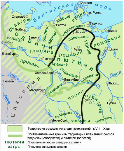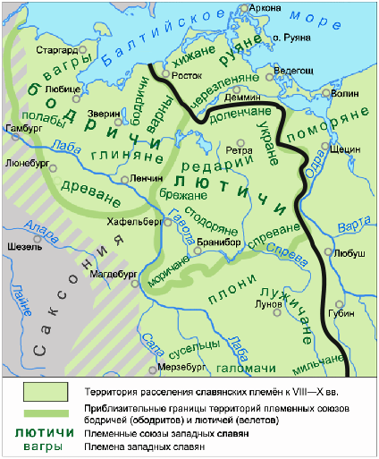 - серед велетських племен: стодоряни, ратари, доленчани та менші південновелетські племена брежан, шправан, укран; північновелетські (хижани та черезпеняни) – найімовірніше надалі залишались поза сферою впливу Східнофранкського королівства;