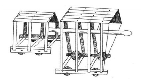 Так з’являється захисна черепаха – пересувна каркасна конструкція на колесах. В її основі знаходилось кілька скріплених балок і нижня рама з кількома парами коліс. Вітрувій у своїй праці [3] описує такі типові параметри черепахи: ширина – 30 ліктів (7 м) , висота – 13 ліктів (3 м). Цікаво зазначити, що в його розумінні черепаха є не тільки захистом для тарана, а суміщає в собі одразу кілька видів облогових машин — таран (в автора — баран), башта–геліополь і розташовані в ній катапульта чи скорпіон. Найчастіше обшивка каркасу була виготовлена із зшитих шкур худоби, рідше – з дощок, або переплетеної лози [4]. Такий захист хоч і був безсилим проти горючих сумішей і снарядів метальних машин, проте ефективно захищав від стріл і дрібного каміння [5].