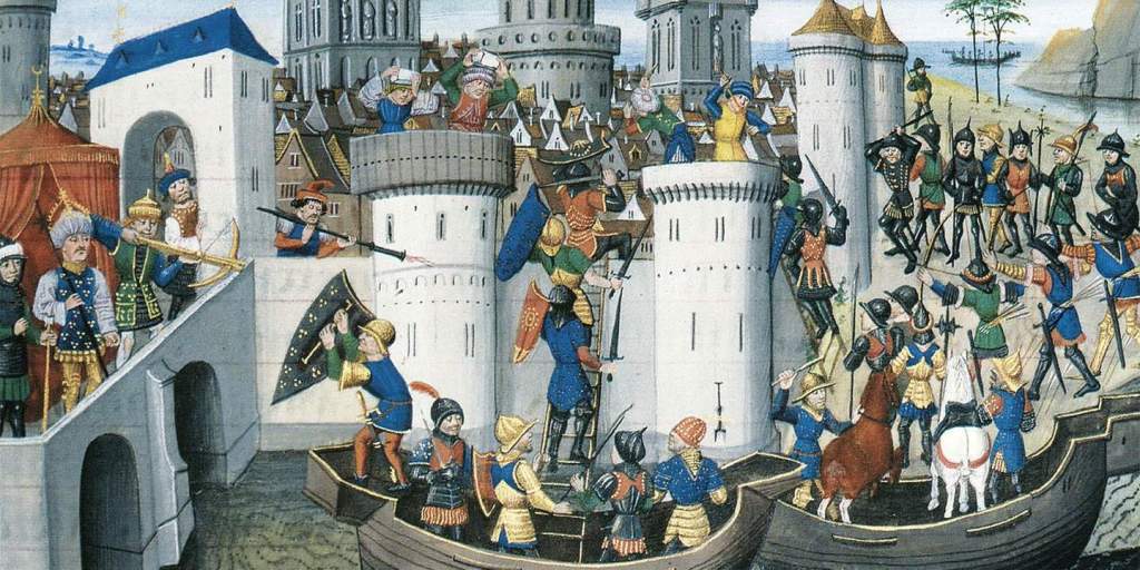 Для нас цікавим є опис облаштування венеційського бойового корабля, який додатково оснащувався штурмовими драбинами, захистом від стріл і метальними машинами для обстрілу мурів з води. Решта метальних машин були встановлені хрестоносцями на суші і їх снаряди могли долітати до стін імператорського палацу.9 З огляду на ареал поширення і специфіку установки на кораблях, це повинні були бути саме онагри. Жорстка нерухома будова рами в ситуації, коли машина розташовувалась на площадці корабля, сприяла збільшенню стійкості конструкції і ефективності стрільби.