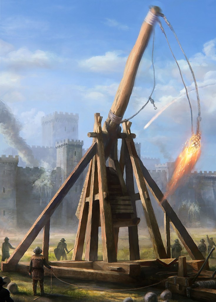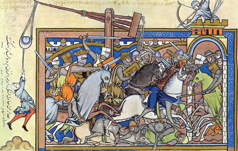 У власноруч написаному листі про похід в Єгипет (в 1250 р.) Людовік Святий описує невдалий штурм табору сарацинів поблизу м. Мансури [10]. Під час цієї битви сарацинами було використано багато метальної техніки і вбито багато лицарів, зокрема графа Артоа. Машини було відбито хрестоносцями і знищено при подальшому відступі. Облогова метальна техніка була надто громіздкою, щоб транспортуватись від однієї позиції до іншої, чи використовуватись військом під час переходів. Головним тактичним завданням було те, щоб вона не дісталася противнику.