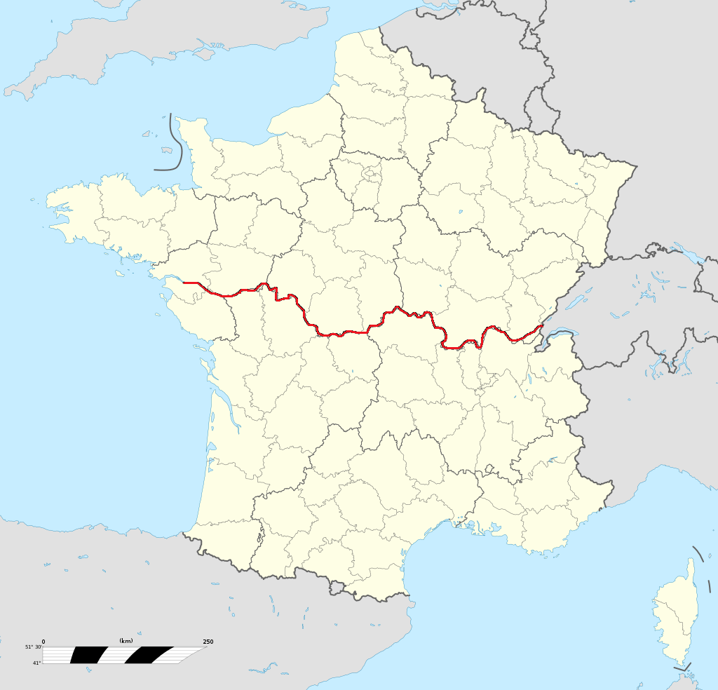 - До південного берегу гирла Луари.