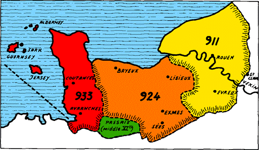 Так чи інакше, договір 911 р. долучив норманів з Сени у політичну та адміністративну систему франків. Очевидно, що Роллон міг своєрідно трактувати свої зобов’язання. Процес утворення герцогства проходив поступово. Притік данських та норвезьких банд, що в пошуках наживи направлялись в Іспанію, не зупинявся до 1015 р. На чолі однієї з останніх, стояв норвезький принц Олаф Товстий, майбутній Олаф Святий, який прийняв хрещення в Руані. Зрештою, норманським герцогам вдавалось використовувати нападників в своїх інтересах, наприклад проти Еда Шартрського в 1013 р. Для тих, кого не влаштовував порядок нового герцогства, була відкрита дорога на південь – вони і створили кордони майбутньої Південної Італії в ХІ ст.