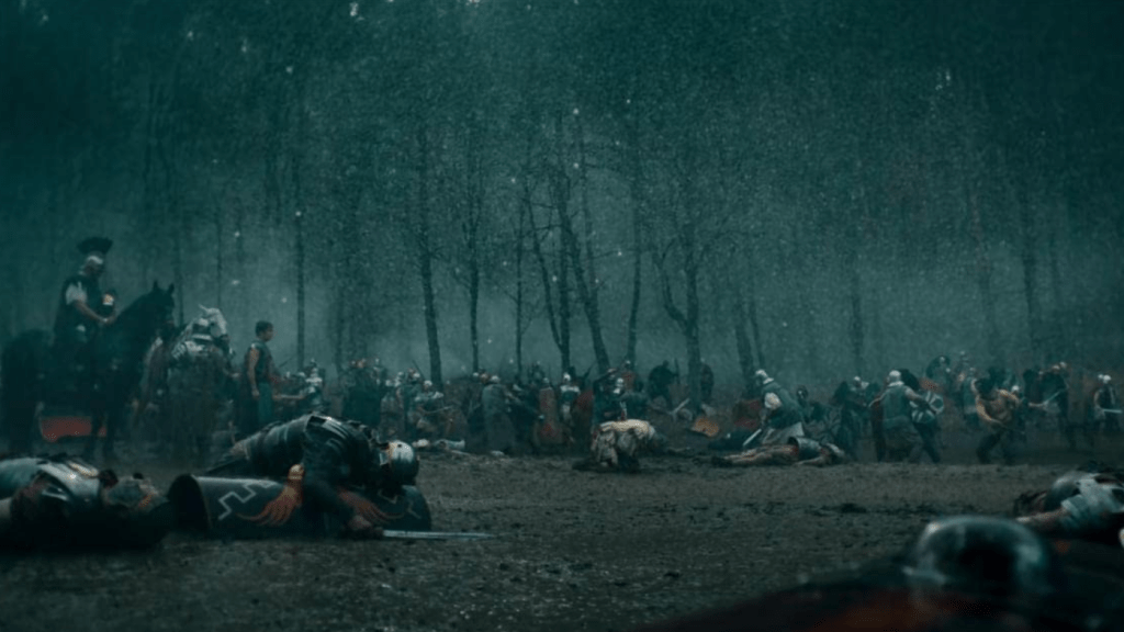 Реально ж, Битва у лісі почалась не із виманювання римлян на відкритий простір – жоден адекватний вождь цього би собі не дозволив (та і яка користь тоді із засідки?). Був натиск на колону в похідному марші, яка розтягнулась через вузьку дорогу та обоз. Легіонери фактично не були готові до спротиву на де-юре лояльній провінції, хоч і здійснили після першого нападу спробу реорганізації та невдало штурмували позиції германців. Більше того, Луцій Вар вивів частину військ на відкритий простір, спорудив табір, і тільки його знищення призвело до повної його поразки на п’ятий день боїв в лісі. Що ми з того побачили в серіалі? Нічого. Що побачите з реальної викладки подій саме Ви? Вирішуйте для себе – в результаті, ми маємо хорошу картинку, типову для художньої стрічки, але майже відсутню історичність та слабкий сюжет.