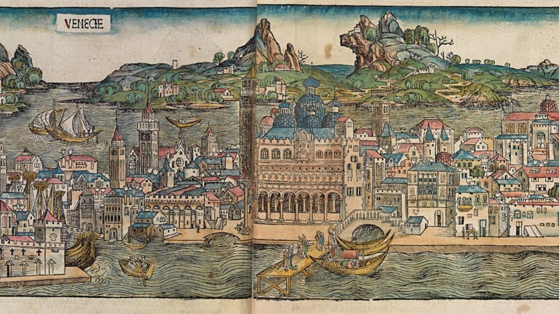 Уже з XIII ст. німецькі торговці влаштувалися в Венеції у спеціально побудованому для них будинку – Fondaco dei Tedeschi (Прим. ред.: буквально “Німецький будинок/[торговий] дім”). Самі нюрнберзьці стають резидентами «міста на воді» з XIV ст. З того ж моменту історія Fondaco тісно переплітається з історією самого Нюрнберга. Володарі Венеції без скромності так говорили про торговців Нюрнберга – «gleichsam von nichts zu den größten Reichtümern gelangt», тобто «досягли найбільших багатств, не маючи нічого».