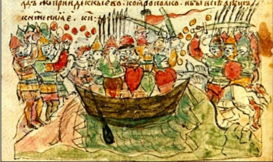 Після голодної зими на порогах із, ймовірно, ослабленою та деморалізованою дружиною, Святослава спіткала фінальна невдача, коли він потрапив разом із багатою здобиччю до рук печенізького князя Кур’ї: «У рік 6480 [972]. Прийшов Святослав у пороги, і напав на нього Куря, князь печенізький. І вбили вони Святослава, і взяли голову його, і з черепа його зробили чашу, – окувавши череп його золотом 1, пили з нього» [12, с. 43].