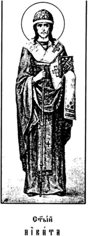Через такий послух та попередні заслуги, його ж пізніше поставили єпископом до Новгорода (бл. 1096 – 1108 рр.) – за велике його добродійство, де багато чудес сотворив: одного разу, як посуха була, помолившись Богу, дощ з неба звів; і пожежу в городі загасив. І нині зі святими вшановують його, святого і блаженного Микиту».