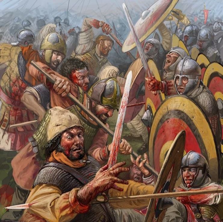 Візантійський скутарій “…Кутіла, був зранений дротиком в середину голови, але і з тим встромленим дротиком продовжував переслідування [відступаючих остготів]. Коли вороги кинулись навтіки, він разом з іншими ромеями в’їхав до Міста по заході сонця – із дротиком, який стирчав з його голови. Це було видовище, гідне довгого опису. У тій же сутичці якийсь готський лучник поранив Арзія, одного з гвардійців Велізарія, потрапивши йому поміж носом та правим оком. І хоча стріла пройшла вглиб до шиї, однак не вийшла назовні, а інша частина древка стирчала з його обличчя і гойдалася, як цей муж їхав верхи. Побачивши його разом із Кутілою, римляни дуже здивувались, що вони їдуть верхи, не звертаючи уваги на своє нещастя”.