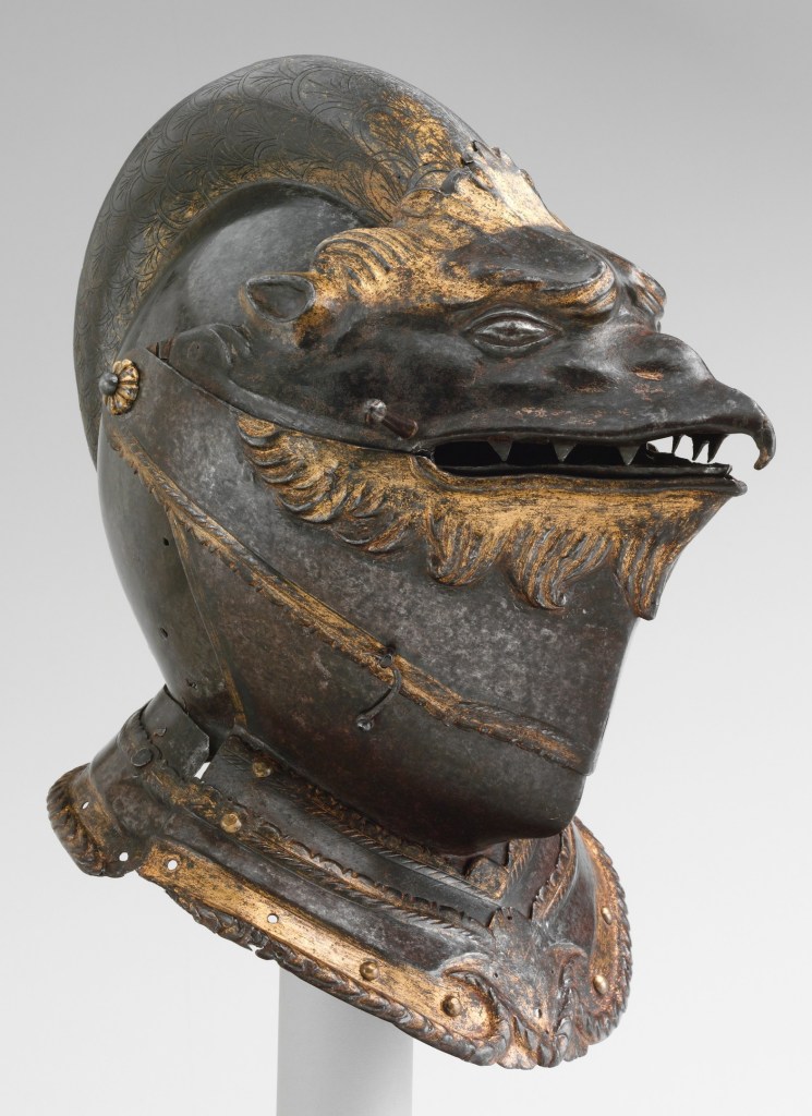 Є в колекції Метрополітен-музею Нью-Йорку парадний шолом з багатим декором у вигляді голови грифона. Можливе місце його виготовлення – Мілан або Брешія, а датування – середина XVI ст.