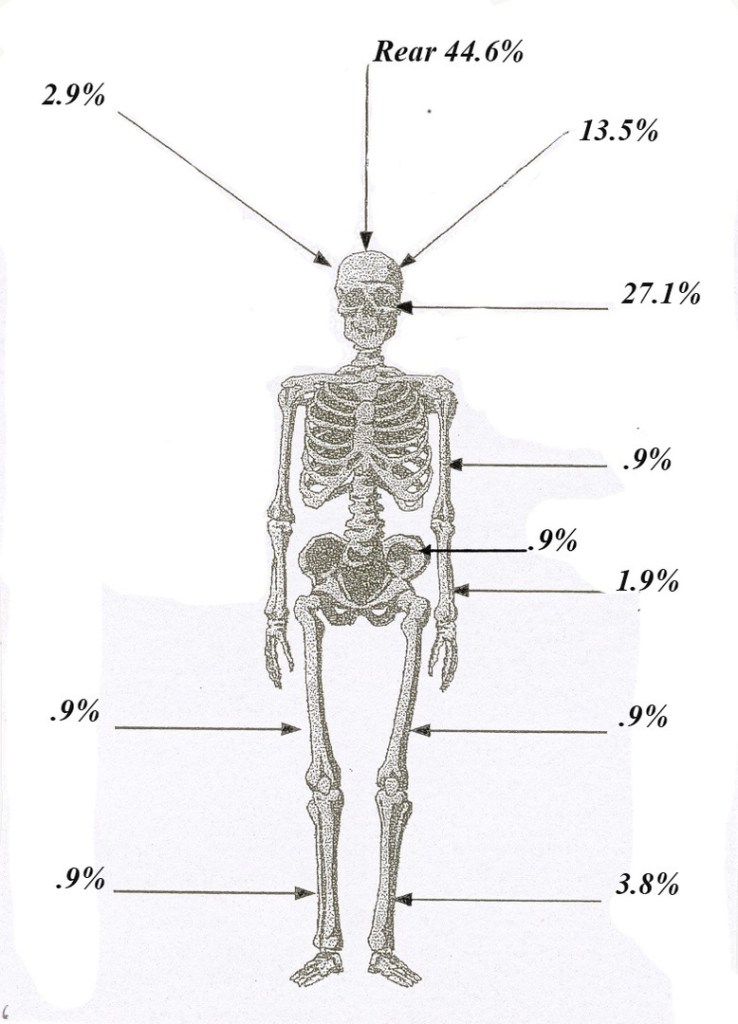 Передісторія у битви, як і у безлічі сутичок, дуже проста – гроші, і хто їх буде отримувати. Битва при Вісбю наочно демонструє сутичку між військовою організацією, заснованою на загальному наборі (готландські селяни) та власне професійними солдатами (данські війська). Результат був очевидним – готландів вирізали та й покидали в братську могилу. Причому, місцями прямо в обладунках, а для Середньовіччя це картина дуже нетипова. Так чи інакше, обладунки нас поки не цікавлять, а от на поранення подивимось. Ось перед нами статистика травм за знайденими скелетами: