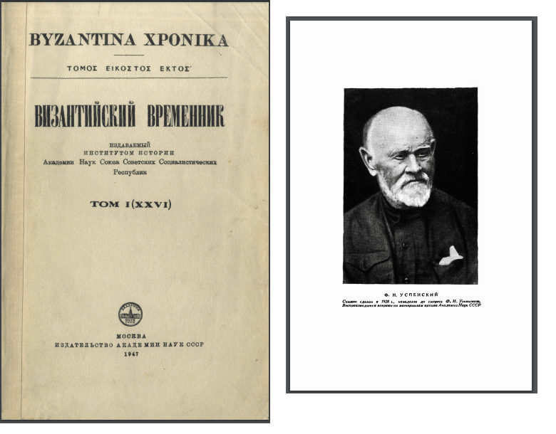 Саме в цей час виник помітний інтерес до історії Візантії у Російській імперії. Проявилось це насамперед у виданні журналу “Византийский временник” із 1894 р. Не виключаємо при цьому, що інтерес у науковому середовищі Росії виник на фоні одночасного розвитку тематичних праць у Західній Європі[3]. Разом з тим, як свідчить звіт Неодмінного секретаря Імперської Академії Наук Миколи Дубровіна за 1898 р.[4], російські візантиністи у своїх напрацюваннях піднімали обширну проблематику – від встановлення автентичності джерел до питань археології. Уваги у звіті заслуговує також розділ “Критика”, у якому розміщені рецензії Олександра Васильєва, Павла Безобразова та Ігоря Рєдіна на статті та монографії німецьких науковців[5]. Особливої уваги на цей період заслуговує багатотомна “Історія Візантійської Імперії” Федора Успенського (вперше опублікована у 1912 р.), однак подальшим якісним змінам у дисципліні завадила Світова війна, до якої додались дві революції.