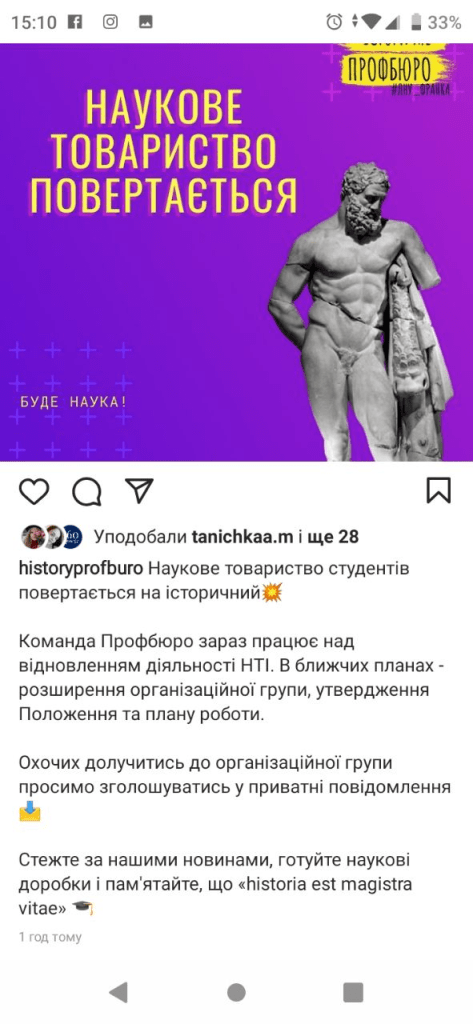 Тут ми не будемо розглядати результатів виборів, вони давно опубліковані на сторінках Профбюро студентів історичного факультету. Проте, дивлячись на підсумки головування Оксани Горак у Студраді для нас, ми, як команда інституціалізованого наукового товариства факультету можемо сказати тільки одне – для наукових ініціатив студентів історичного, колишня голова не зробила абсолютно нічого. Так, горняток та книг ми не виграли й тримаємо особисту образу на те. Наша діяльність була, є, буде добровільною (статті ж бо під примусом не заставиш писати, студії не розробиш). Організація наукових ініціатив на історичному факультеті була прерогативою Львівського медієвістичного Клубу від 2013 року. Ми би й не нагадували відомий серед викладачів та студентів факт, якби не один примітний момент – оголошення про створення ще одного, другого наукового товариства на історичному факультеті з боку… ну, самі здогадайтесь, шановні читачі: