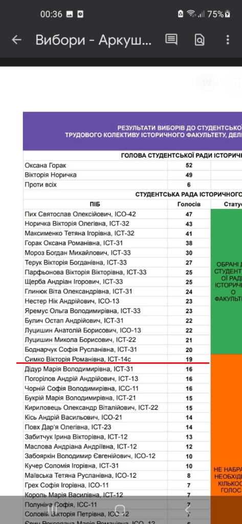 P.S.: Цей текст завершено в пору, коли Оксана Горак, вигравши вибори, передала своє місце як члена Студентської ради історичного факультету Вікторії Симко, якій до входження у саму Раду не вистачило голосів: