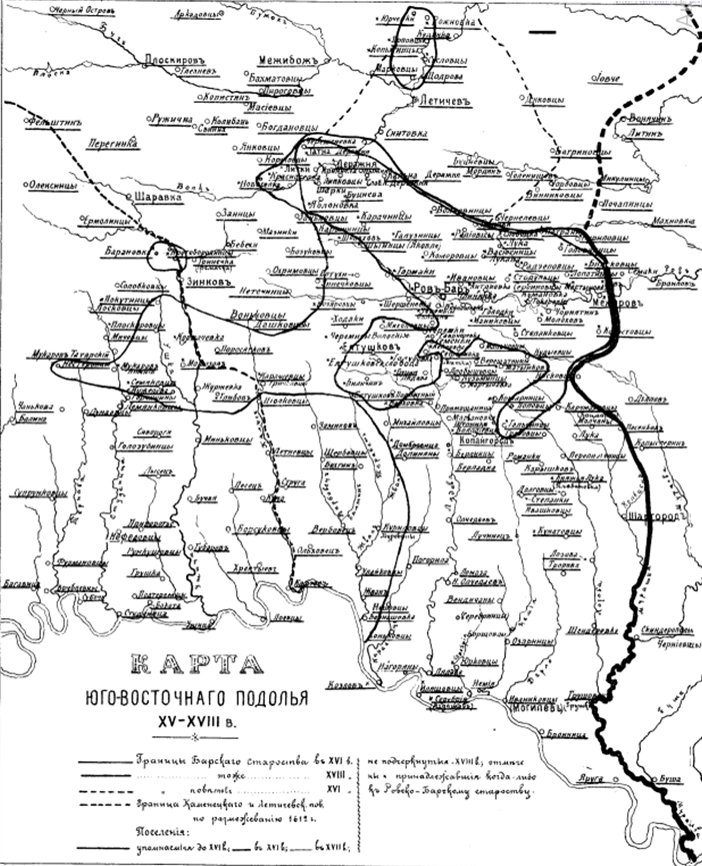 За Бучацьким договором 1672 р. Барське староство з Поділлям потрапило під владу Туреччини. В умовах турецької окупації місцеве населення мало змогу платити податок – харадж, але життя із приходом турків, як пише М. Грушевський, «не було солодким», тому спостерігається масова еміграція: першою покинула ці землі, звичайно, польська шляхта[13]. Однак потрібно зазначити, що пани й не забували про своїх підданих, яких відправляли за межі Поділля, як правило, на Волинь[14]. У новітній час прослідковуємо не один випадок евакуації населення в окупаційних умовах, це ж, думаємо, може слугувати інтерпретацією евакуації в XVII ст. – шляхта переїздить на мирну територію, із думкою про повернення здійснює і переселення підданих.