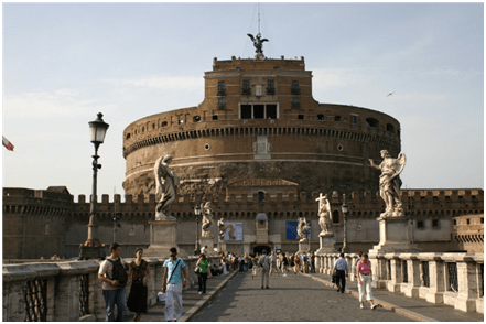 Ця пам’ятка відома також як Мавзолей Адріана, тому що спочатку його замовив римський імператор Адріан як мавзолей для себе та для своєї родини. Пізніше ж папи використовували будівлю як фортецю та замок. У цій споруді було поміщено похоронні урни багатьох інших імператорів, зокрема Антоніна Пія та Каракалли.