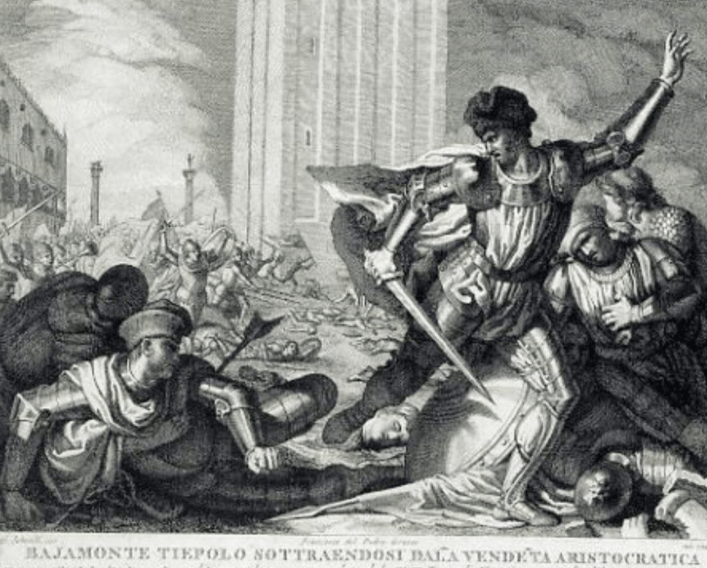 Однак у 1310 р. була ще одна спроба повалення режиму олігархії, яка мала глибокий вплив на життя та уяву венеціанців. Очолило цю змову три молодих знатних патриція Байамонте Тьєполо, Марко Кверіні та Бадоеро Бадоер, метою яких було повалення дожа П’єтра Граденіго, який своїми законами повністю обмежив участь середнього класу в управлінні республікою, зосередивши всю повноту влади в руках аристократії. Крім цього, за роки правління цього дожа, Венеція проживала вкрай важкі часи. Зокрема, в 1308 р. проти Венеції виступив сам римський папа, який, після того як венеціанці відмовились приймати його умови, наклав на них інтердикт, тобто, відлучив від церкви. Жителям республіки заборонялись церковні служби, померлих ховали без відспівування, а немовлят ніхто не хрестив.