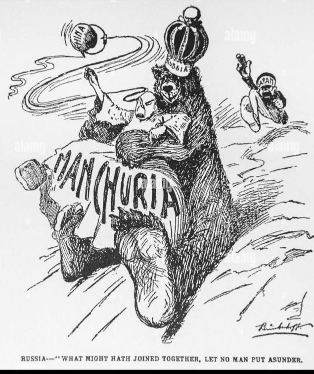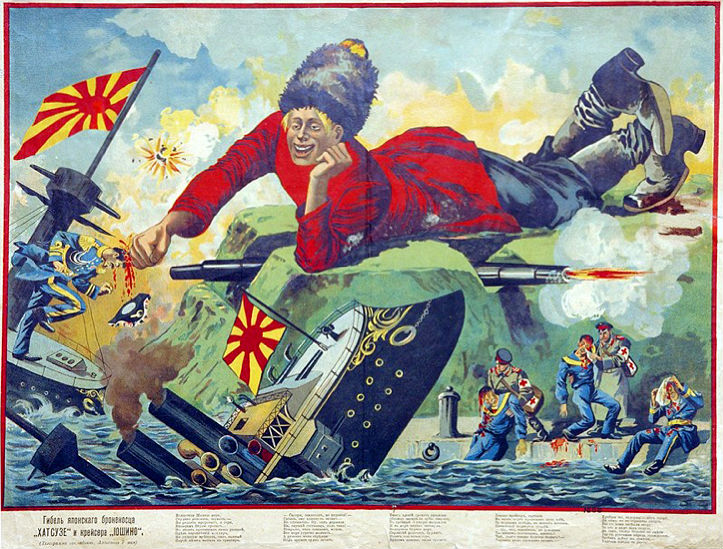 Військове протистояння 1904-1905 рр. між російською та Японською імперіями вчергове показало слабкість першої держави. Передумовами війни стала китайсько-японська війна 1894-1895 рр., яка завершилась не на користь Китаю. За умовами Сімоносекського договору, країна повинна віддати Тайвань, Ляодунський півострів, де розташовувався Порт-Артур (південно-західна частина Маньчжурії) Японії. Відповідно, це не сподобалось росії, яка мала наміри продовжити Транссибірську магістраль через Маньчжурію і до Владивостоку. Китай просить допомоги росії, Німеччини та Франції. Японія під їхнім тиском, змушена піти на поступки. Ляодун було повернено в обмін на виплату компенсацій. Таким чином, росія поширює свої впливи на півострові, зокрема на важливі порти: Порт-Артур і Дальне, які не замерзали у зимову пору. В період із 1902-1903 рр. ведуться переговори із Маньчжурією про виведення звідти російських військ. Обіцянку, звісно, не було виконано. У 1903 р. росія уклала договір із Кореєю про вирубку лісів. Під виглядом лісорубів туди відправляли російських військових, які будували військову базу. Перед Японією, російське представництво відповідало: «їх там немає». Уряд країни сходу сонця, розумів, що з москалями домовлятися нема сенсу, тому перші розпочали конфлікт, атакувавши російський флот у Порт-Артурі 27 січня 1904 р. Впродовж перших місяців було знищено російський флот, тим самим Японія здобула перевагу на морі. У грудні 1904 р. росіяни здали Порт-Артур та Дальній. Портсмутський договір 1905 р. підсумував військову кампанію на користь малої Японії і спричинив першу російську революцію.