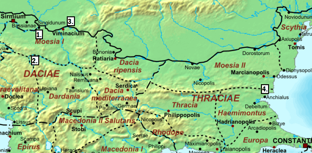 У таких умовах, modus operandi дипломатії Маврикія щодо аварів первинно полягав у підтримці омайхмії, повторно затвердженої у 582 р. Передислокація ромейських сил на схід співпала у часі з провокаціями Баяна до поновлення бойових дій. Зрештою, аварський правитель розірвав договір з Імперією та спрямував кочову орду в напрямку провінції Мезія І (Theophylact 1986, p. 59; Theophanes 1997, p. 375). Бойові дії розвивались успішно для аварів: протягом першого місяця війни, Баян просунувся у напрямку Дарданії, взявши штурмом міста Сингідун (суч. Белград, Сербія), Августи та Вімінакій (суч. Костолац, Сербія). Не зустрівши спротиву, кочовики рушили на захід, у бік провінції Гемімонтус, де зайняли місто Анхіал (суч. Помор’є, Болгарія), у якому Баян розмістив ставку (Theophylact 1986, p. 59–60) (Іл. 2).