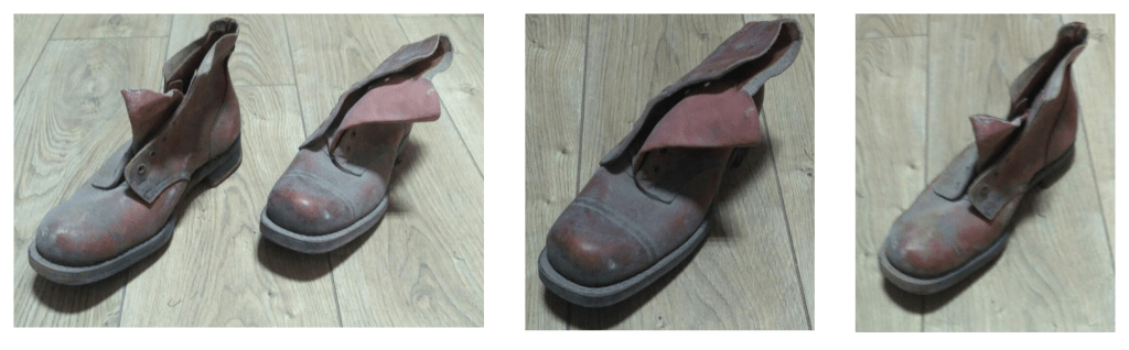 Загалом, у фондовій групі «Шкіра-Ріг» представлені 3 пари чобіт військовослужбовців, атрибутовані нашими попередниками як взуття німецьких солдат доби Другої світової війни. Умовно, їх можна поділити на дві групи, серед яких: