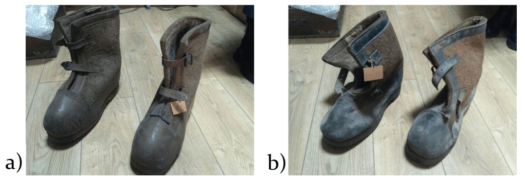 Обидві пари чобіт представляють собою боти виготовлені із грубої повсті та шкіри, що одягались поверх основного стройового взуття. Потреба у їх виготовленні постала зі стабілізацією Східного фронту після невдачі операції «Тайфун» у січні 1942 р. Відповідно, в умовах суворої східноєвропейської зими [21, p. 78], перед фірмами-виробниками солдатського взуття у Третьому Райху постала необхідність забезпечення вартових теплим взуттям.