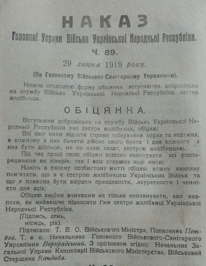 Обіцянка української сестри-жалібниці, при вступі в Армію УНР
