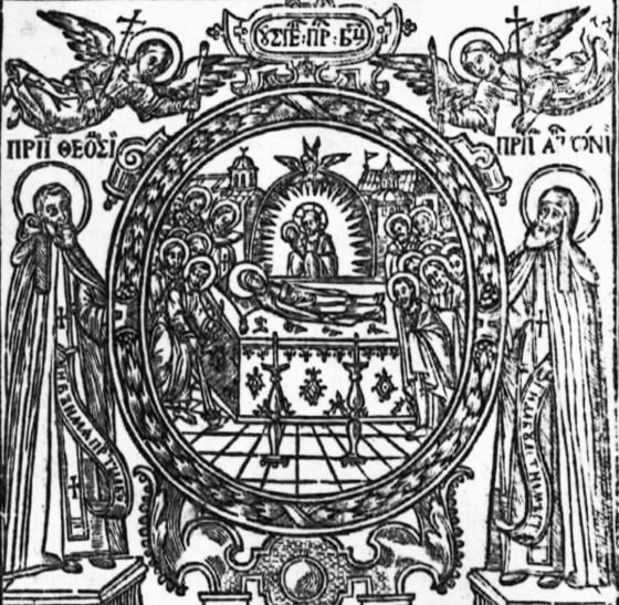 Богородиця разом з святими Антонієм та Феодосієм. Ілюстрація з “Тератургіми”