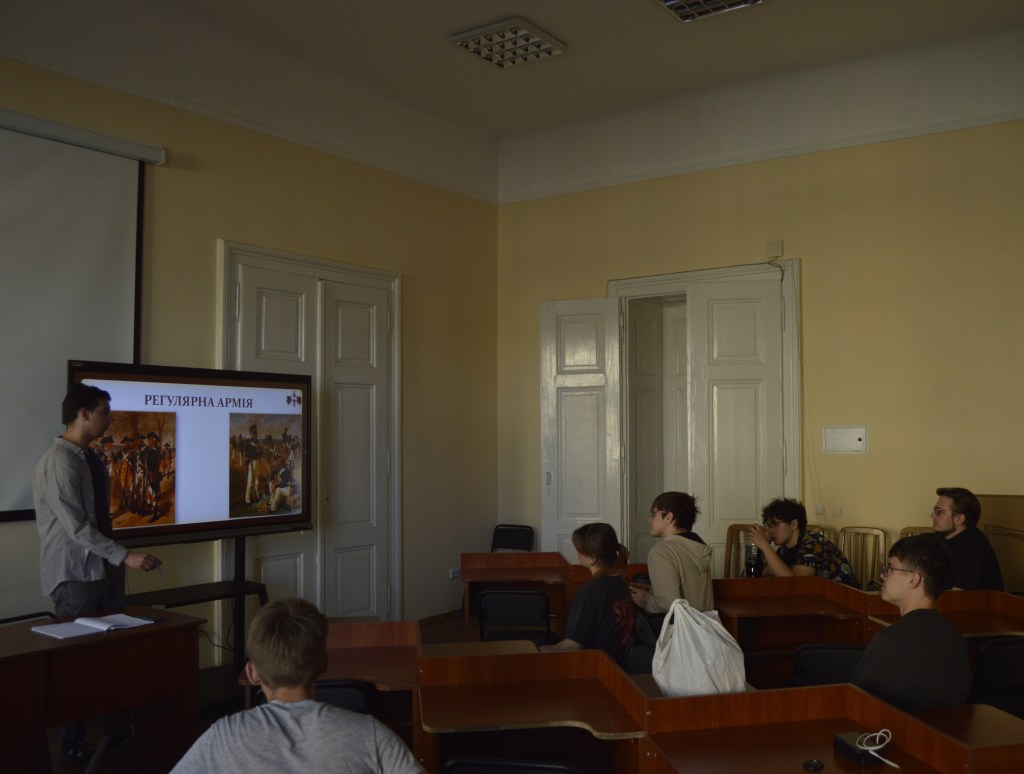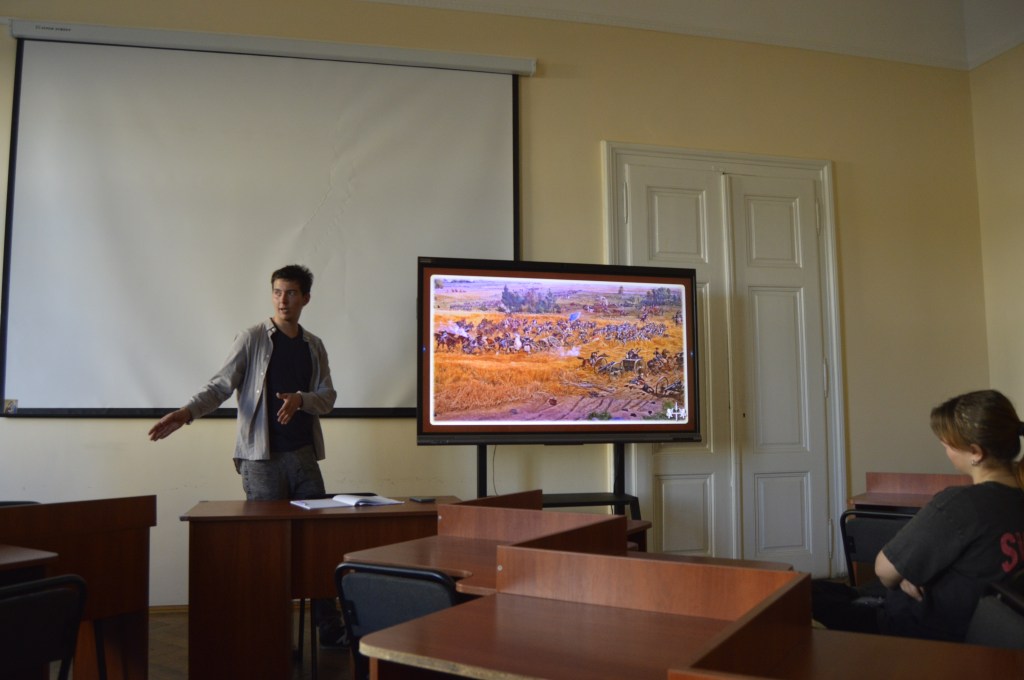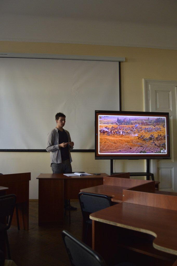 У четвер, 1 травня, відбулася лекція на тему “Призов чи добровольці: як формувалися і воювали армії у Громадянській війні в США.” Лектором виступав Перкач Ігор, студент ІІІ-го курсу історичного факультету ЛНУ ім. Івана Франка. Більшість присутніх слухачів були представниками кафедри світової історії модерного часу, але також були присутні студенти інших кафедр, що не могло не порадувати лектора. До заходу також долучився доцент кафедри історії середніх віків і візантиністики, кандидат історичних наук, Козловський Сергій Орланович. Присутність викладацького складу на таких студентських заходах весь час тішить, адже часто вони діляться своїм досвідом і порадами, що допомагають покращувати навички молодим дослідникам.