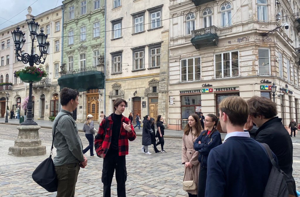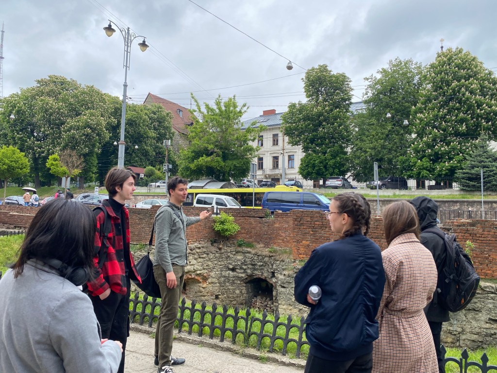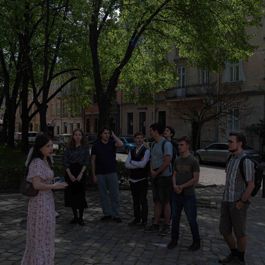 Першою екскурсією була захоплива прогулянка в часі та просторі під назвою “Львів – місто ста народів.” Відбулася вона 10 квітня, а проводив її гід, аспірант ІІ року навчання історичного факультету ЛНУ ім. І. Франка Денис Булавін. Дійство переносило аудиторію на 700 літ давніше, етнічними кварталами центру Львова.