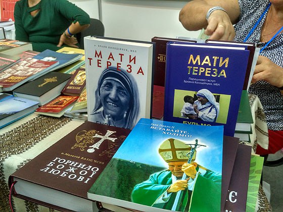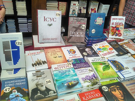 Асортимент видавництва “Місіонер”, представлений 2017 р. на книжковому ярмарку Book Forum у Львові.