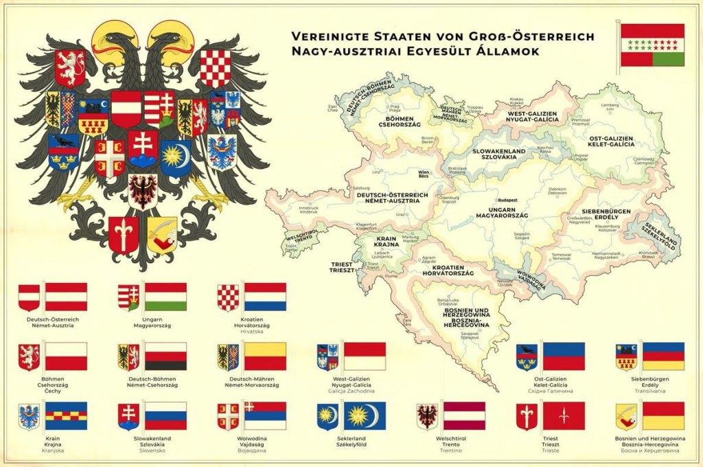 Карта територіальних одиниць Австро-Угорщини.