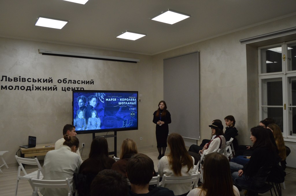 Минулого понеділка, 27 жовтня 2025 року, зусиллями нашої команди було проведено кіновечір. Предметом заходу стала історична драма “Марія – королева Шотландії” (2018 р.), присвячена складній долі Марії І Стюарт. Кіновечір відбувся у конференц-залі Львівського обласного молодіжного центру (LOMC) та зібрав чимало зацікавлених слухачів – від студентів-істориків до представників факультетів іноземних мов та журналістики ЛНУ ім. Івана Франка.