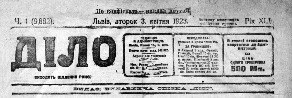 Фрагмент газети “Діло” за 3 квітня 1923 р.