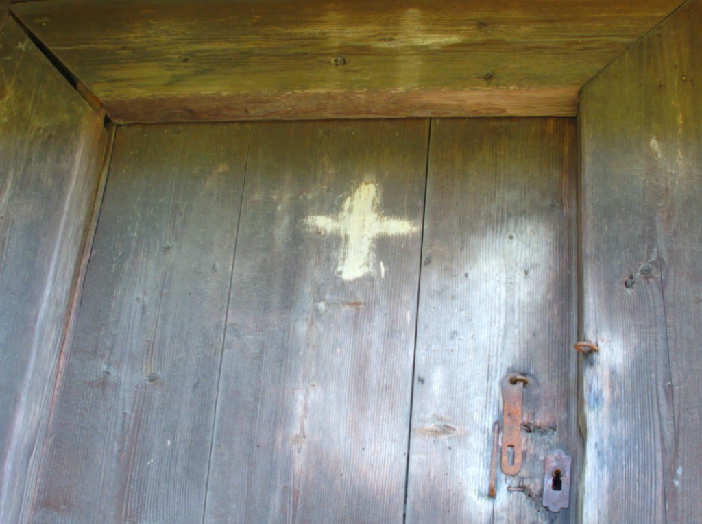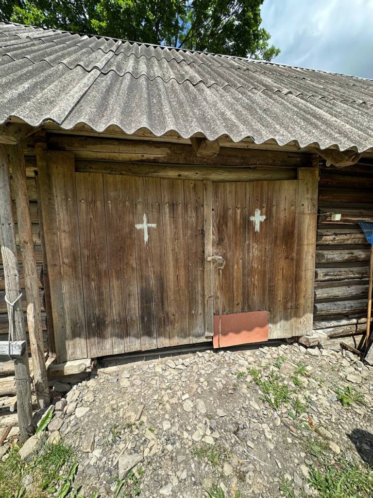 Хрести на бойківських будівлях, які малювали на Бабин Вечір (Другий Святвечір).