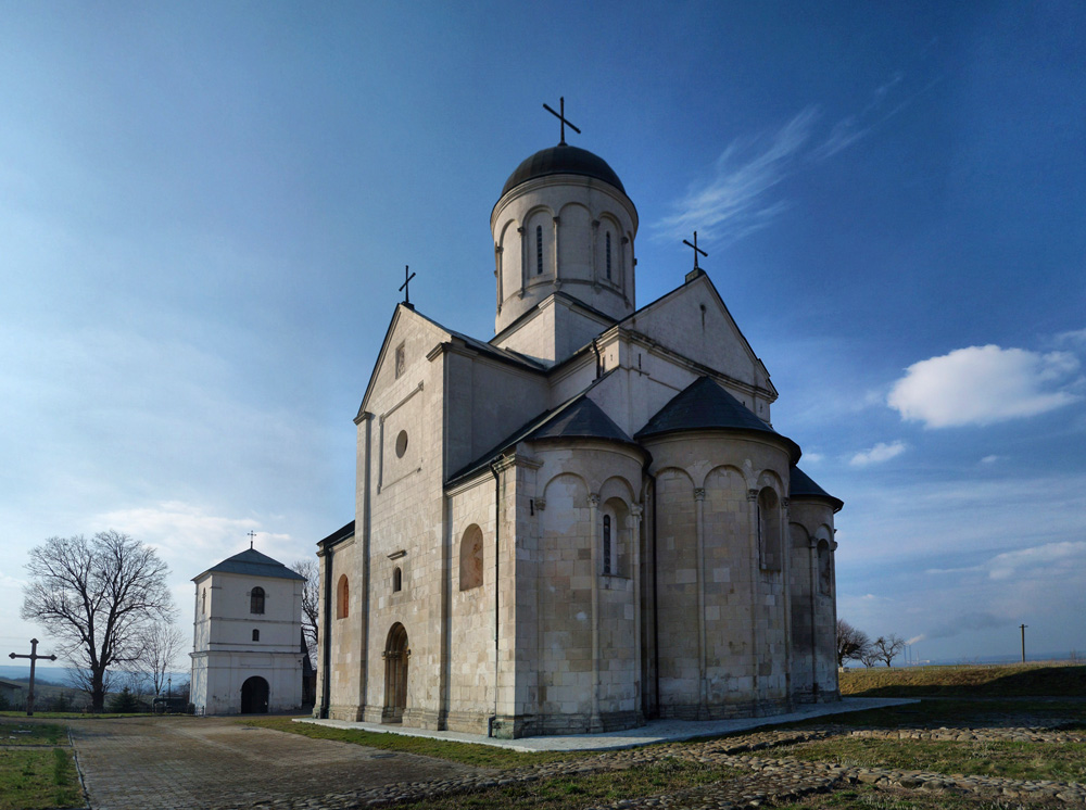 Як пише мистецтвознавець Адруг Анатолій, даний храм збудовано у хрестово-купольному плані з чотирма стовпами, трьома навами і трьома апсидами зі сходу. Єдиний купол увінчує циліндричний підбанник, який спирається на прямокутну основу через триступеневу систему злегка стрілчастих арок-закомар. Останні позначають на фасадах центральну наву. Бічні нави перекриті чвертьциркульними склепіннями. Разом вони утворюють на всіх чотирьох фасадах трилопатеві завершення.